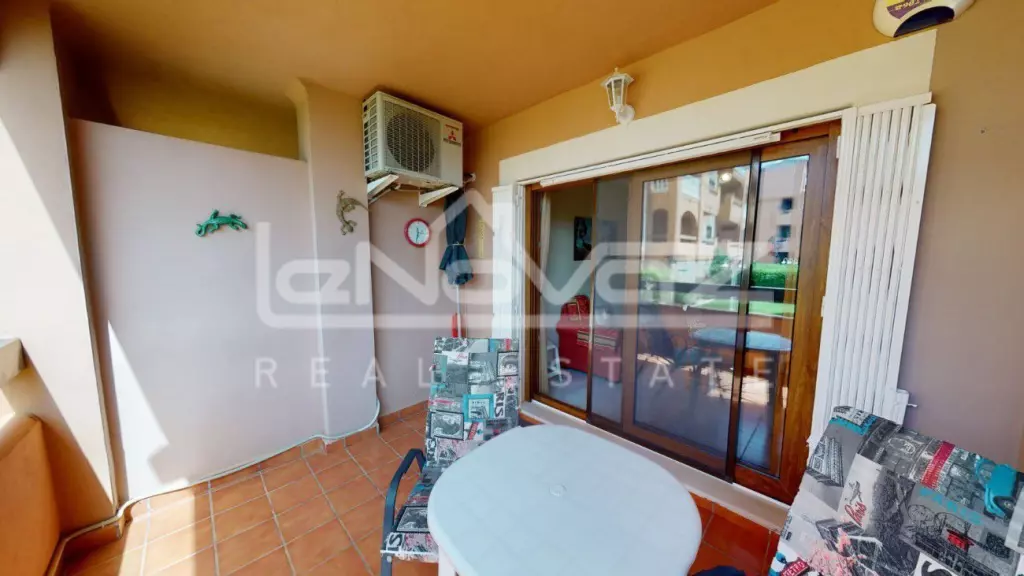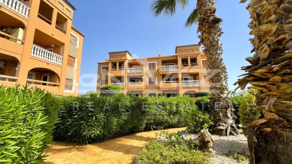 Spacious ground floor apartment with 2 bedrooms and 2 bathrooms in a beautiful urbanization in Villamartin. Fully furnished apartment located less than 5 minutes drive from Villamartin Plaza. 2 large bedrooms, including a master bedroom with en suite bathroom, 1 family bathroom, open bright living-dining room and a fully equipped kitchen. Spacious balcony overlooking beautiful gardens. The building complex has an elevator, parking spaces both inside the gated complex and on the main road, a very large communal swimming pool and a communal solarium with stunning views of the surroundings.