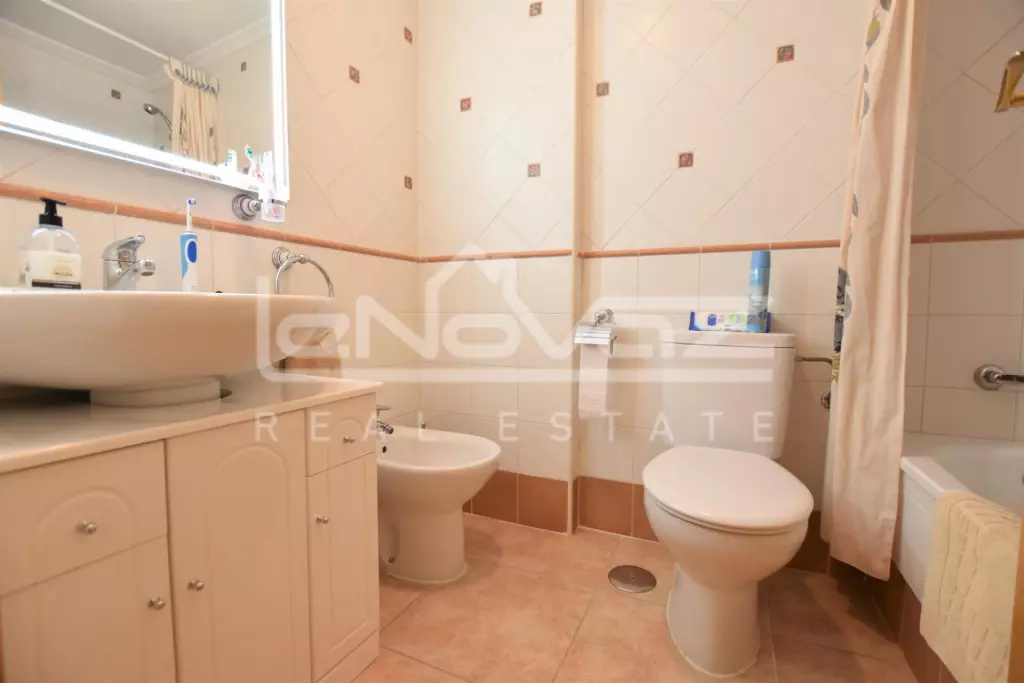 Directly off the kitchen there is access to the large West Facing garden with high walls for perfect seclusion, this has been well maintained and wraps around the side of the house to a storage area, directly next to the property is the main access to the complex as well as the staircase to the garage where there is a private parking space. The communal pools are just around the corner and with 2 to choose from there is always space for family and friends. There are good bus links around the property and just a 2-minute walk to the nearest commercial center with bars, restaurants, supermarket and more! The property is in great condition and is being sold fully furnished and comes with many extras!