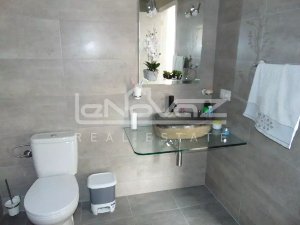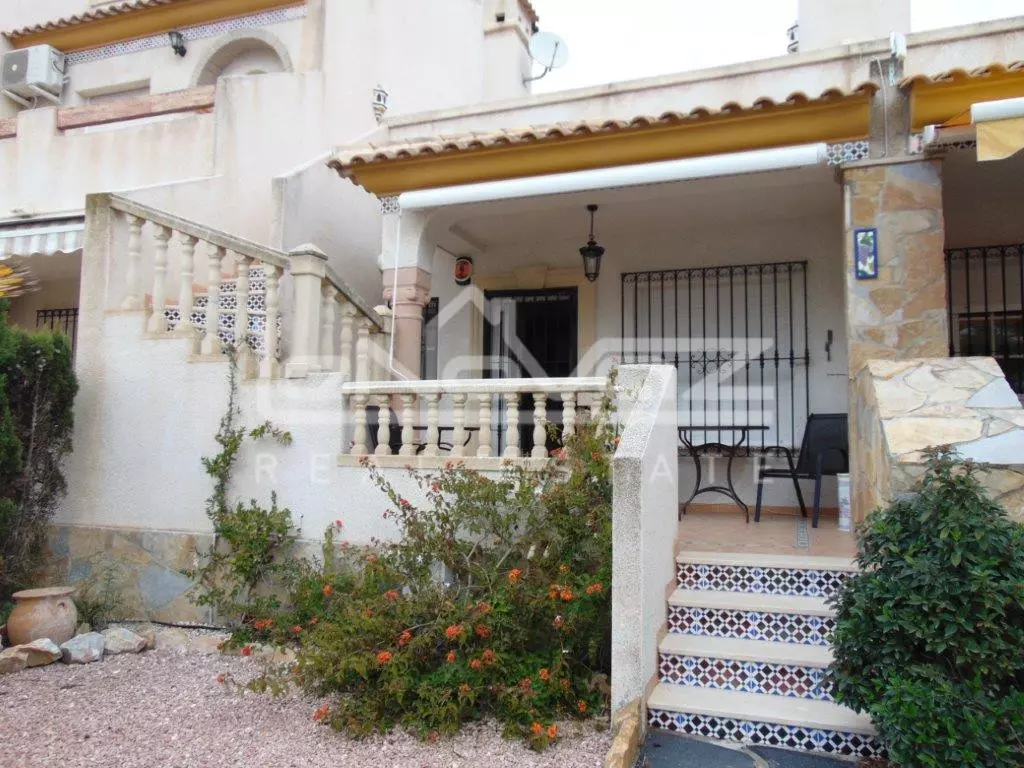 This southfacing townhouse is located within the quiet cul de sac of La Feria within Las Ramblas Golf, the main living accomodation is on th ground floor consisting of 2 bedrooms 2 bathrooms and a lounge with an open plan kitchen. On the upper level, connected by an external staircase you can find a large bedroom with walk in wardrobe an modern design en suite bathroom. Both levels also have terraces. The tranquil rear garden backs on to the 13th hole of the Las Ramblas golf course.