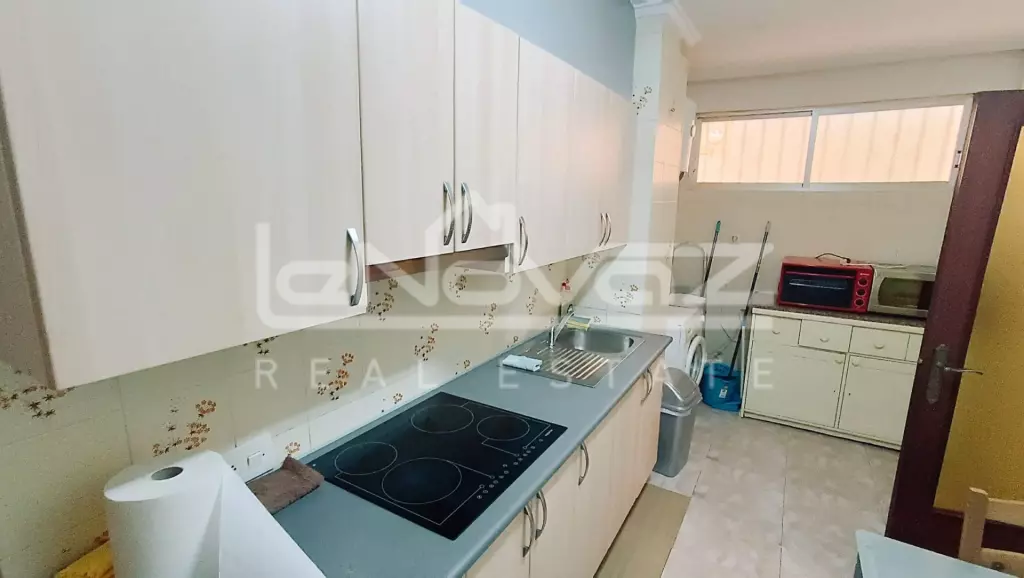 South facing ground floor apartment just 150m from the sea in Torrevieja. The apartment building is ideally located, in the very center and just a few minutes walk from all amenities. For your comfort, the house has an elevator and a shared solarium with breathtaking views of the marina and the beach. 2 furnished bedrooms and 1 bathroom with shower. The open plan living-dining area opens onto a balcony overlooking the marina. Air conditioner. Separate kitchen with furniture, stove and washing machine. The main feature of this property is its location. It is ideal for renting out or as a holiday home and would be a great investment.