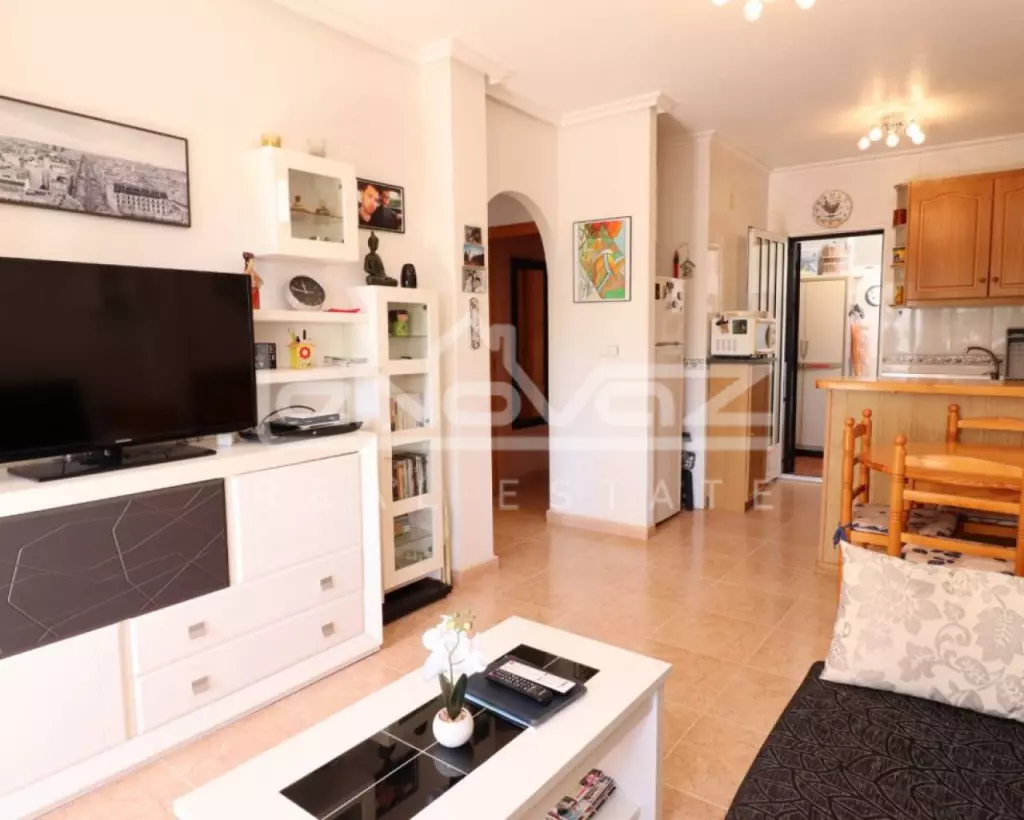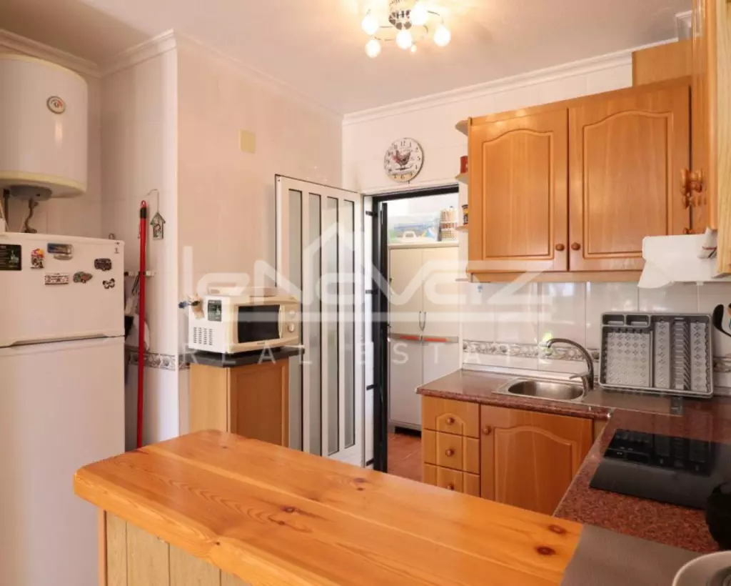 Great house on the ground floor, very sunny with a magnificent southeast-facing terrace, so you will enjoy the sun for much of the day. The house has 2 bedrooms with fitted wardrobes, a fully renovated bathroom with a shower. American kitchen and a wonderful gallery with a laundry area. Community pool 2 steps from the house and we will have parking included for the car. The residential Arco del Mediterráneo, is located just 2 minutes from the fabulous Zenia Boulevard shopping center, and 5 minutes from the popular Zenia beach. Do not wait any longer and contact us to organize a visit without commitment
