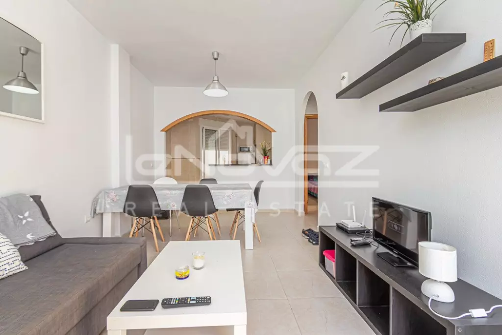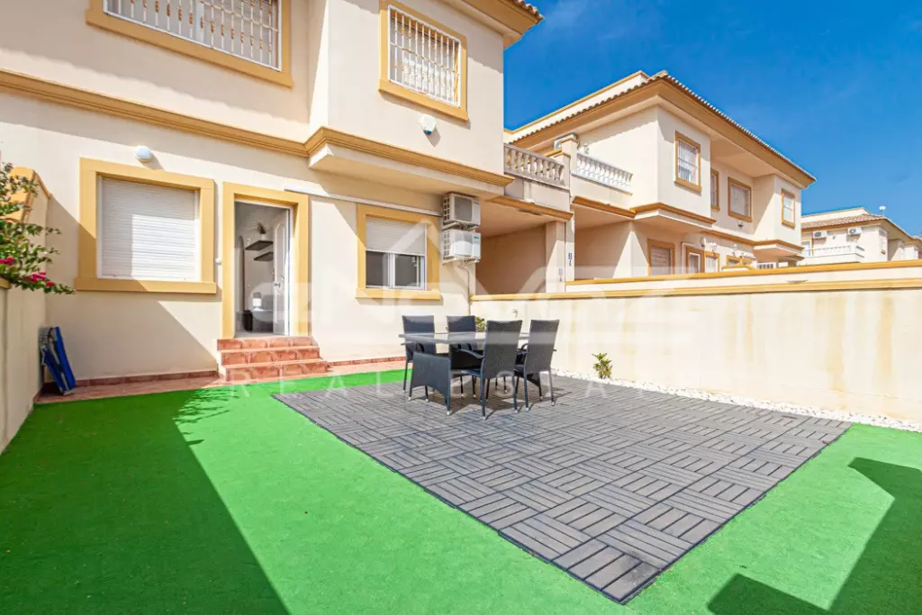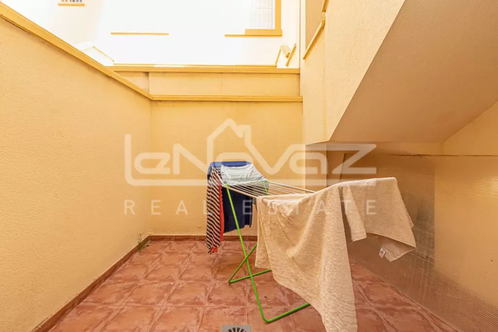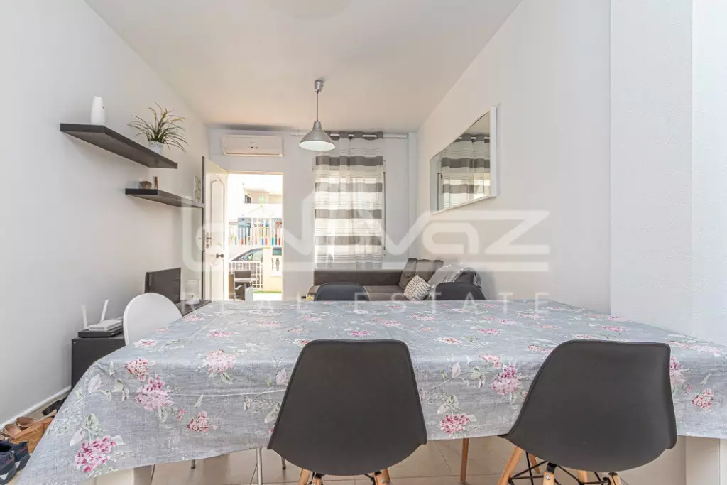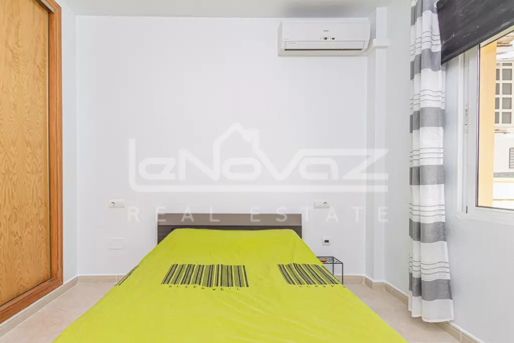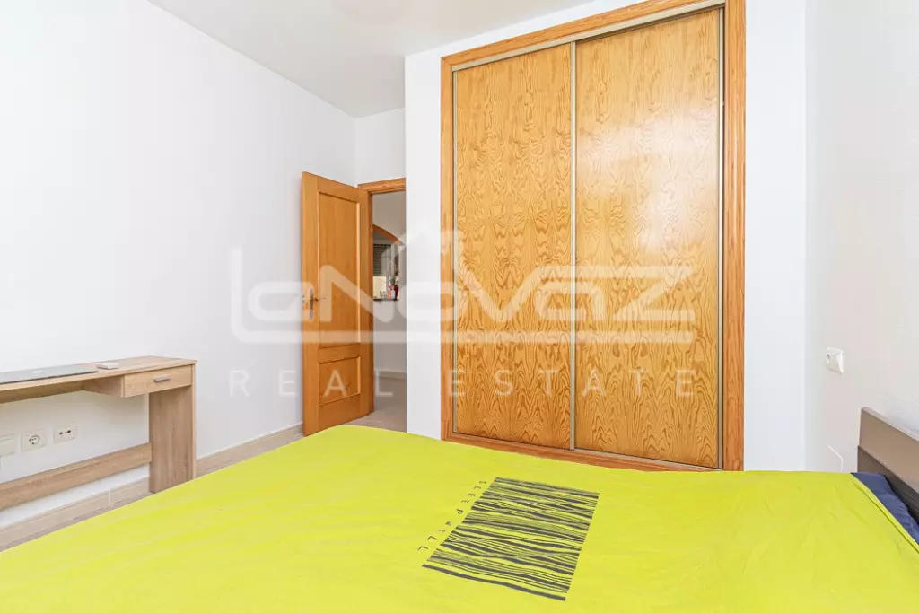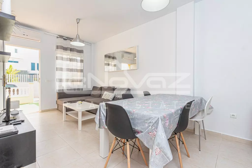 Piso en perfecto estado de 2 habitaciones y terraza jardín muy amplia en Playa Flamenca. Luminoso apartamento de 2 dormitorios con muebles y armarios empotrados, baño moderno, cocina americana, terraza trasera y amplia terraza con patio delantero privado, check-in y parking. Urbanización con dos piscinas situada junto al parque, polideportivo ya tan solo 10 minutos de la magnífica playa. Muy cerca se encuentran el famoso centro comercial La Zenia Boulevard, tiendas, cafés, restaurantes, escuelas.