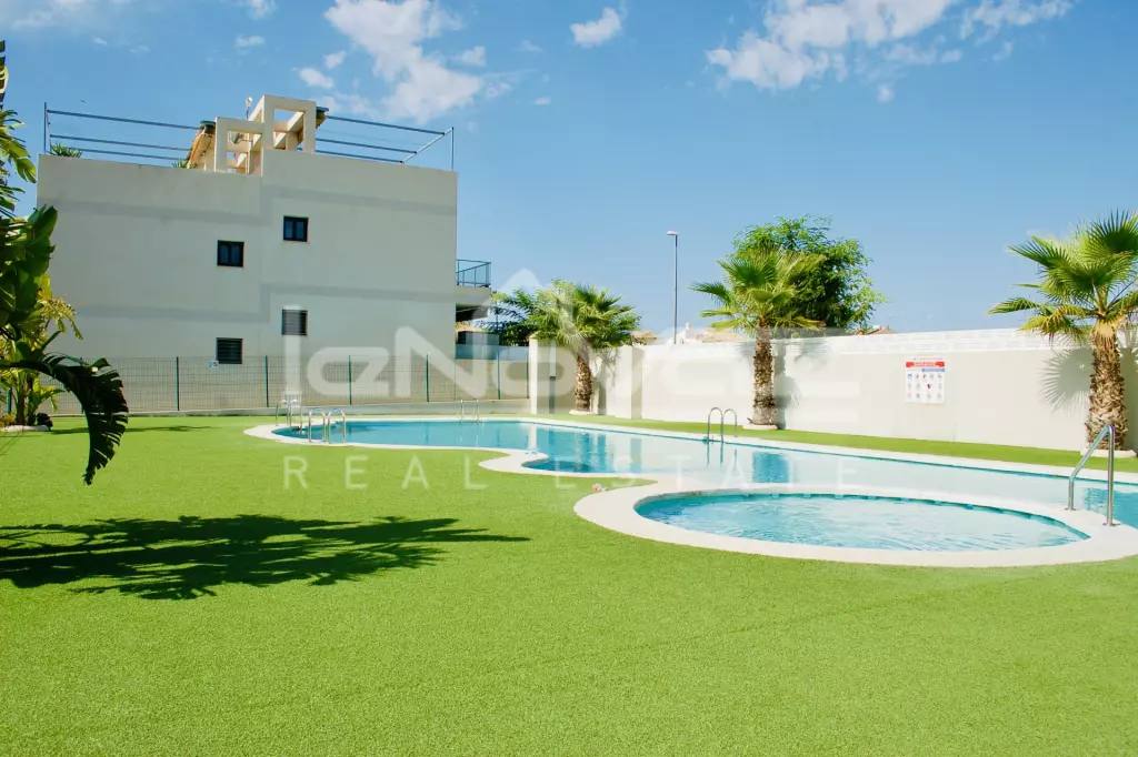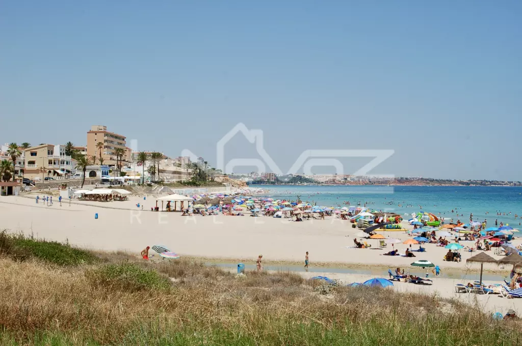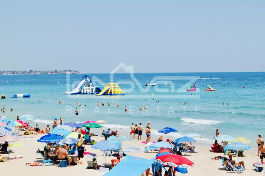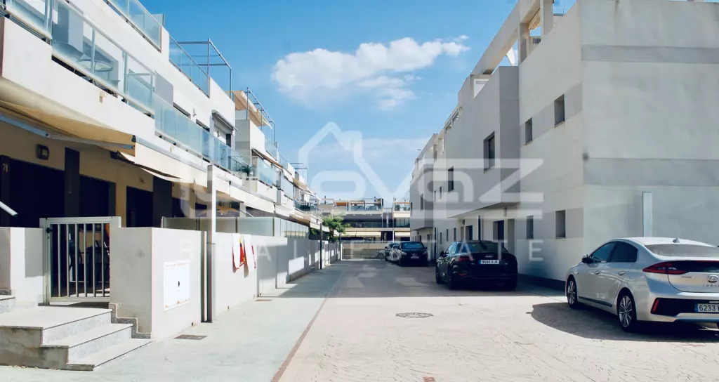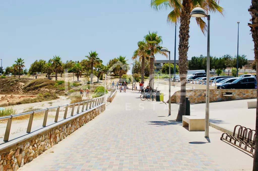 Piso de 2 dormitorios y gran terraza con una ubicación fenomenal a tan solo 50 m de la playa más bonita de Pilar de Horadada. El piso, construido en 2016, se encuentra en planta baja, está orientado al suroeste y dispone de un solárium muy amplio. 2 dormitorios modernos con armarios empotrados, 2 baños completos, amplio salón con comedor independiente, cocina americana abierta con todos los electrodomésticos necesarios. Urbanización muy bien cuidada con zonas verdes y piscina comunitaria. Pilar de Horadada es una ciudad turística moderna, donde es agradable pasar no solo las vacaciones de verano, sino también vivir todo el año, gracias a la infraestructura bien desarrollada, la proximidad al aeropuerto internacional, el clima ideal y las playas mediterráneas más grandes.