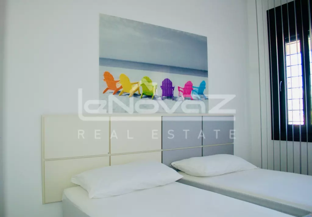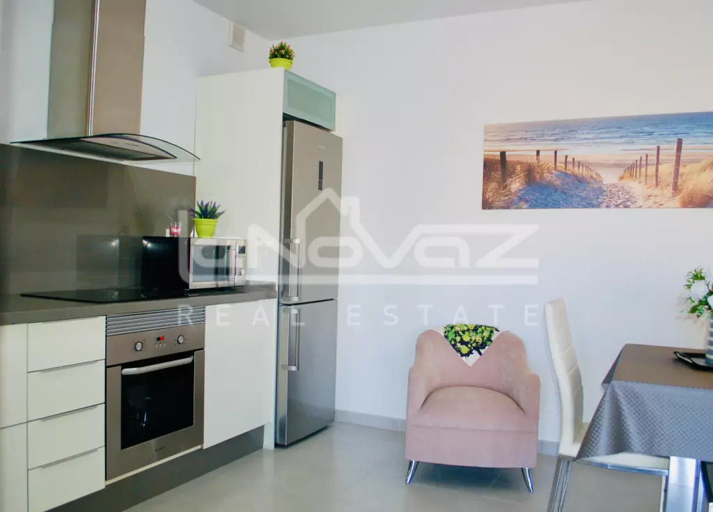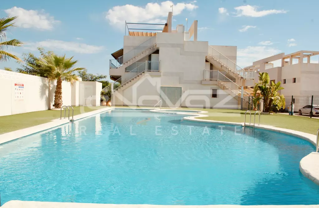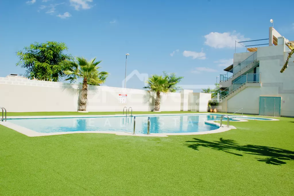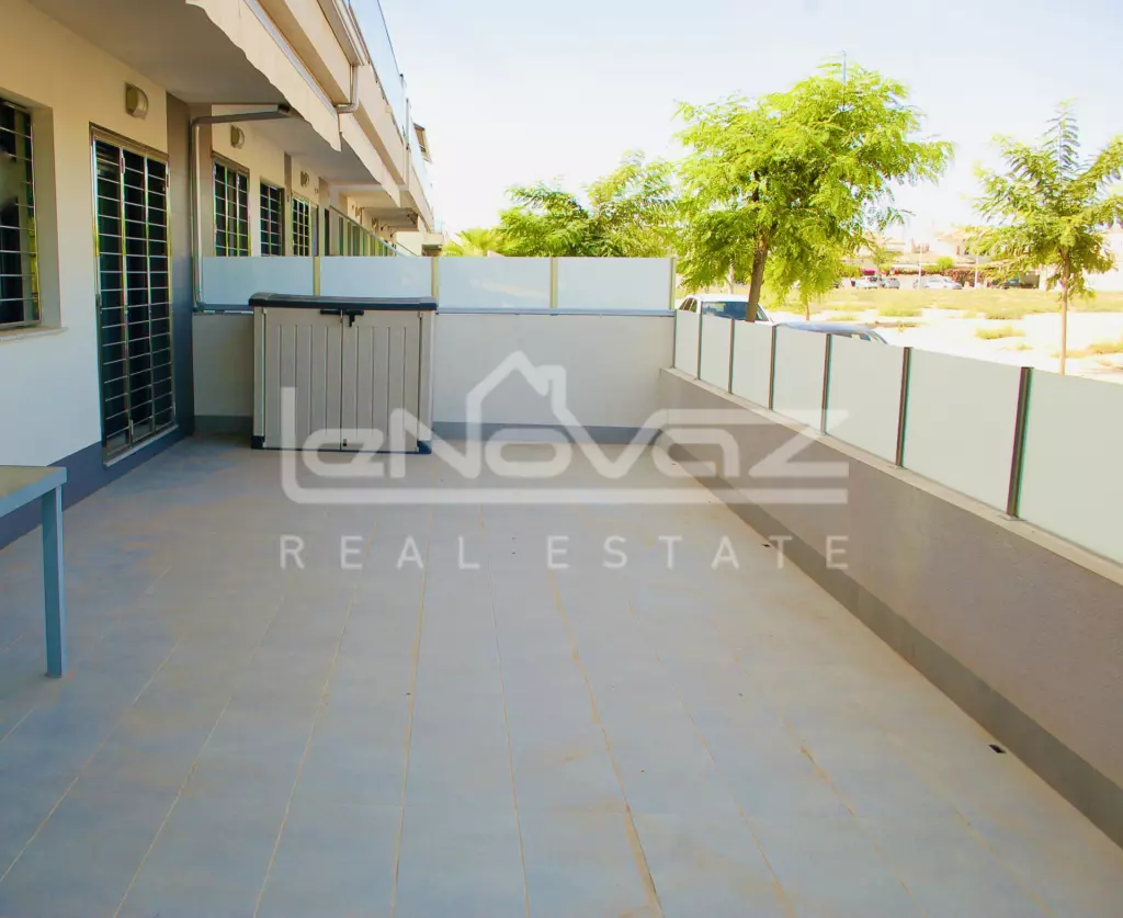 Piso de 2 dormitorios y gran terraza con una ubicación fenomenal a tan solo 50 m de la playa más bonita de Pilar de Horadada. El piso, construido en 2016, se encuentra en planta baja, está orientado al suroeste y dispone de un solárium muy amplio. 2 dormitorios modernos con armarios empotrados, 2 baños completos, amplio salón con comedor independiente, cocina americana abierta con todos los electrodomésticos necesarios. Urbanización muy bien cuidada con zonas verdes y piscina comunitaria. Pilar de Horadada es una ciudad turística moderna, donde es agradable pasar no solo las vacaciones de verano, sino también vivir todo el año, gracias a la infraestructura bien desarrollada, la proximidad al aeropuerto internacional, el clima ideal y las playas mediterráneas más grandes.