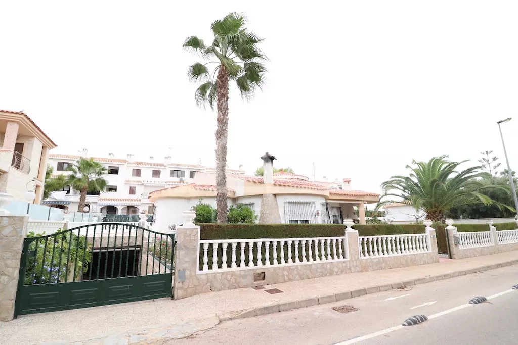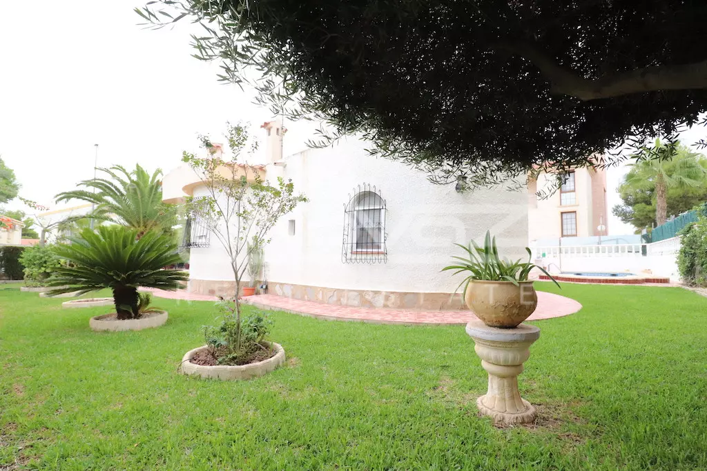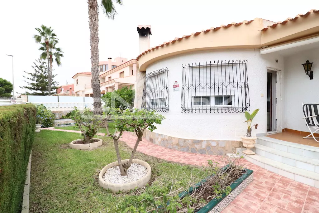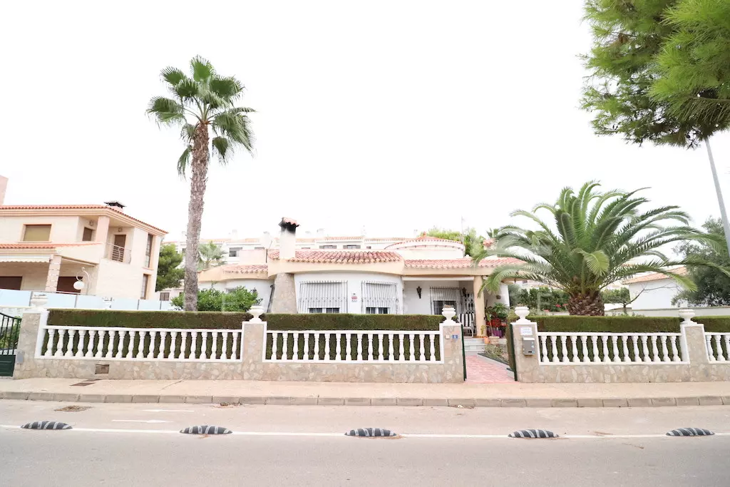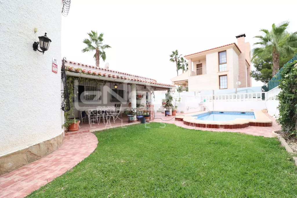 La Zenia, Chalet independiente a tan solo 400 mts de la playa y orientación Sur con una parcela de 508 m2 y una vivienda de 228 m2 dividida en 2 plantas cuenta con 3 dormitorios ( 2 en planta baja y 1 en la planta de arriba), 2 baños, 2 salones uno de ellos con chimenea, cocina independiente, 3 terrazas, piscina privada , garaje subterráneo para 2 coches, la vivienda se vende amueblada.