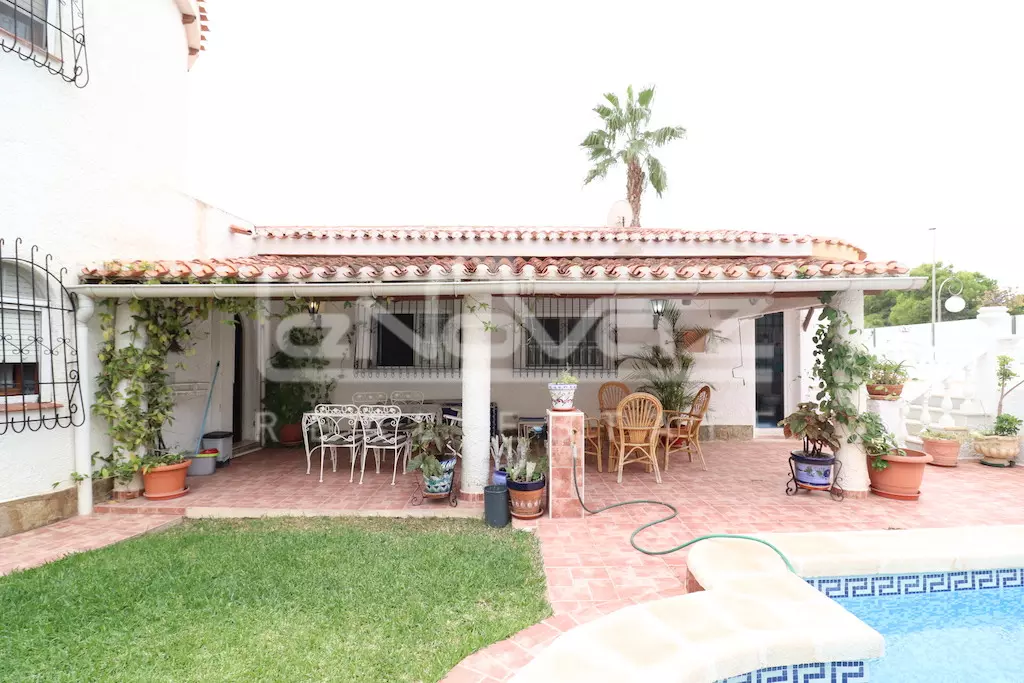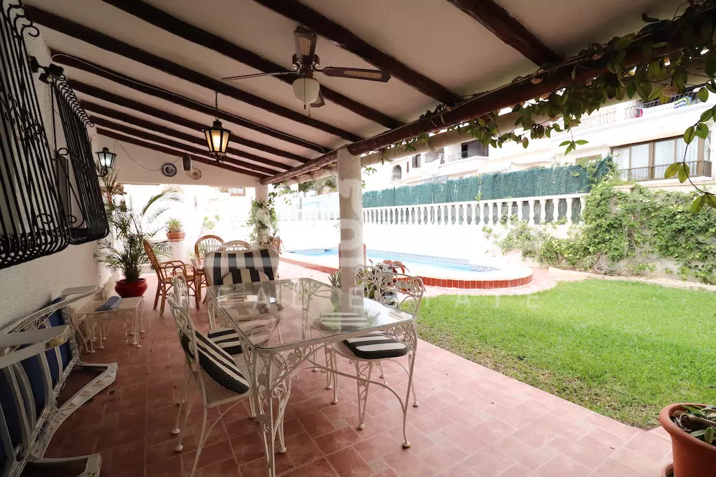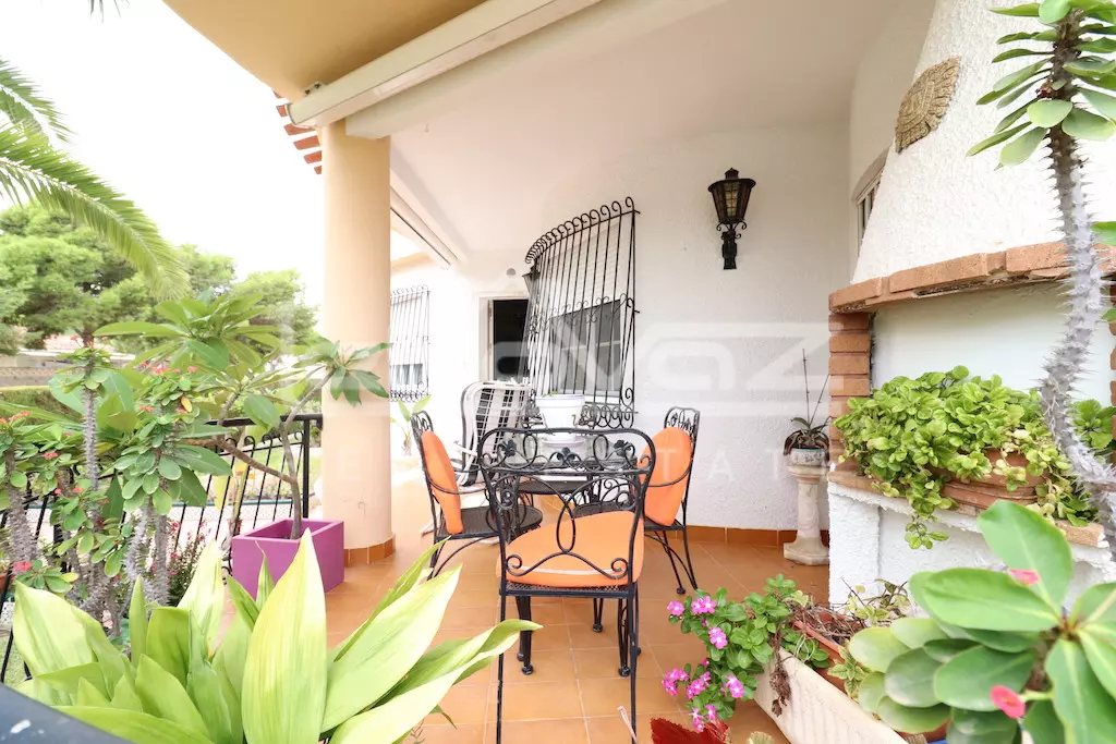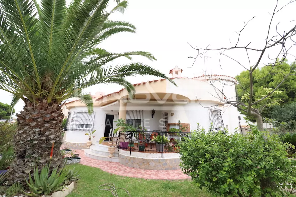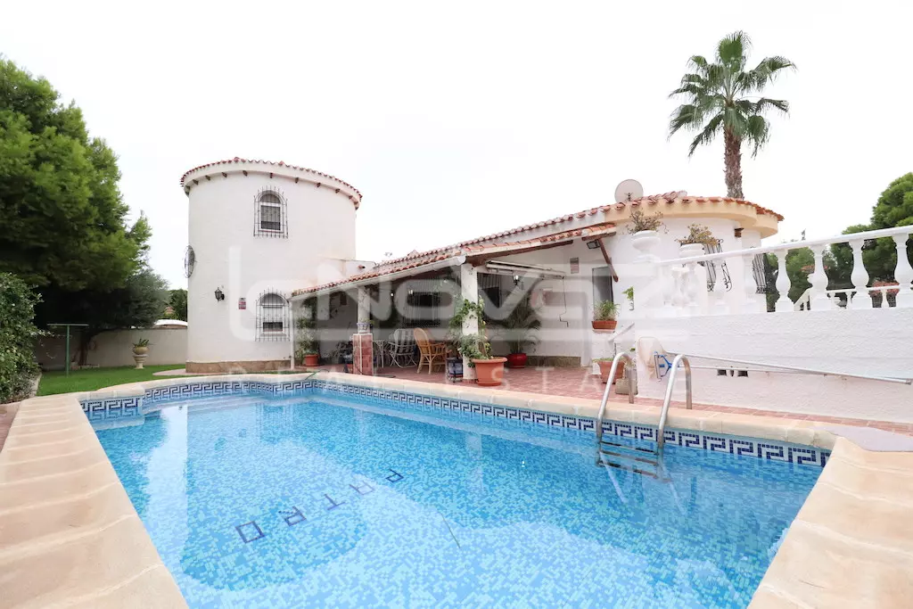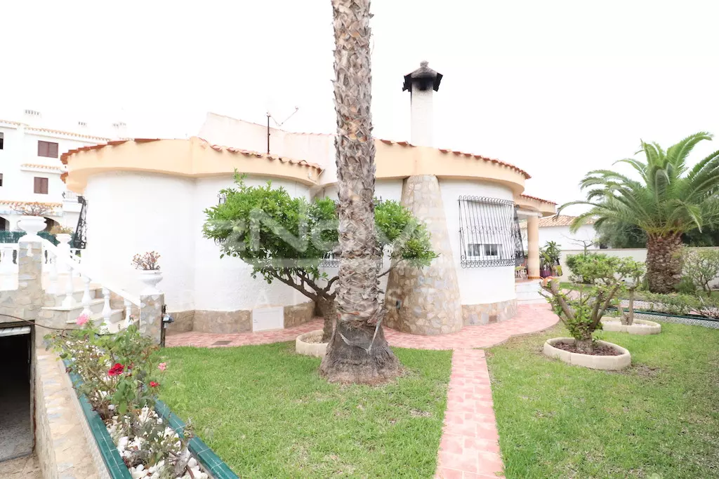 La Zenia, Chalet independiente a tan solo 400 mts de la playa y orientación Sur con una parcela de 508 m2 y una vivienda de 228 m2 dividida en 2 plantas cuenta con 3 dormitorios ( 2 en planta baja y 1 en la planta de arriba), 2 baños, 2 salones uno de ellos con chimenea, cocina independiente, 3 terrazas, piscina privada , garaje subterráneo para 2 coches, la vivienda se vende amueblada.