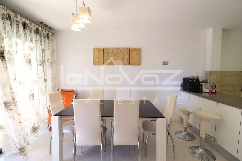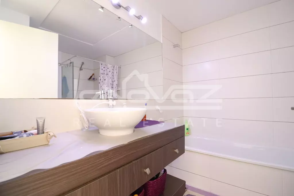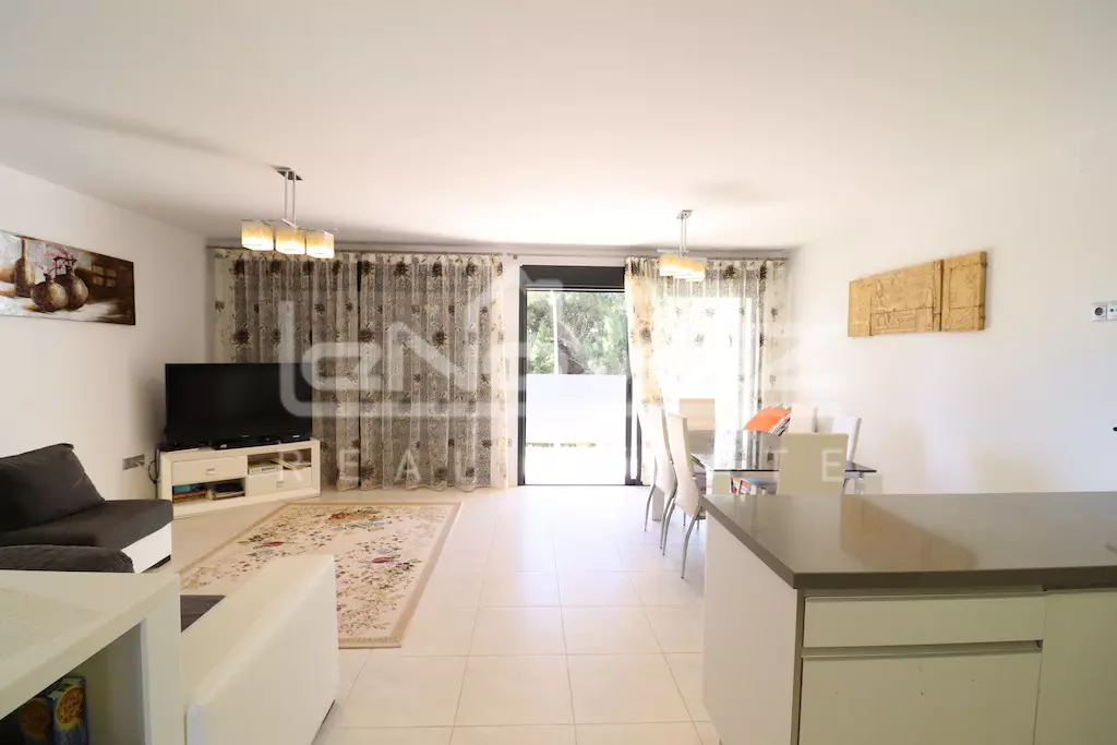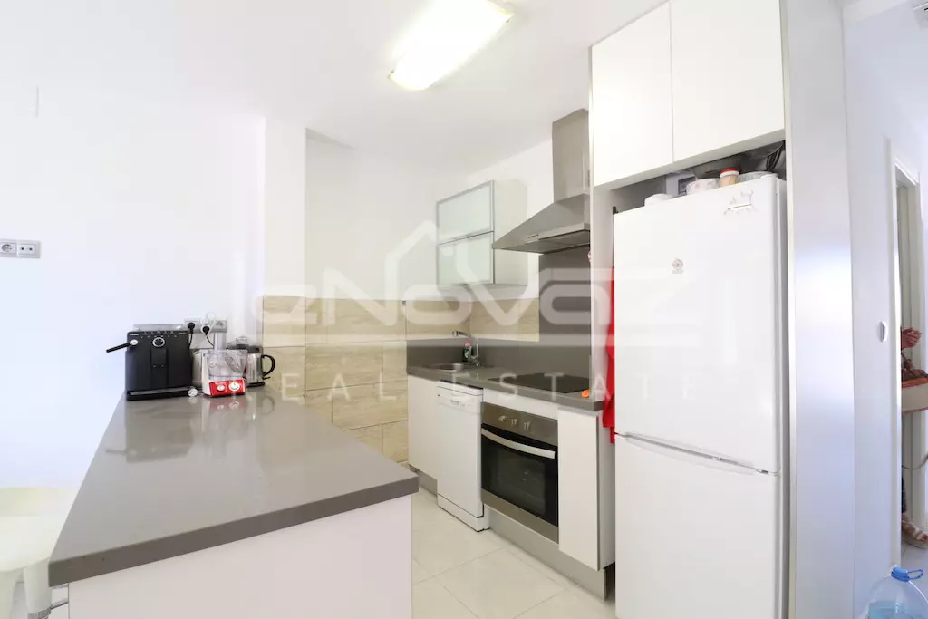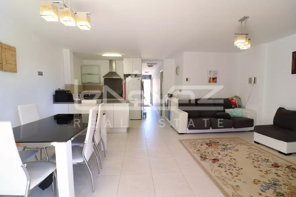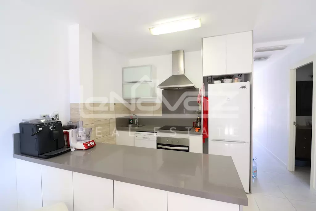 Apartamento en planta primera con ascensor y orientación sur de 80 m2 con 2 dormitorios, baño, amplio salón comedor con cocina americana y una terraza de 10 m2, la vivienda se vende amueblada y se vende junto con un garaje subterráneo, la urbanización cuenta con piscina comunitaria.