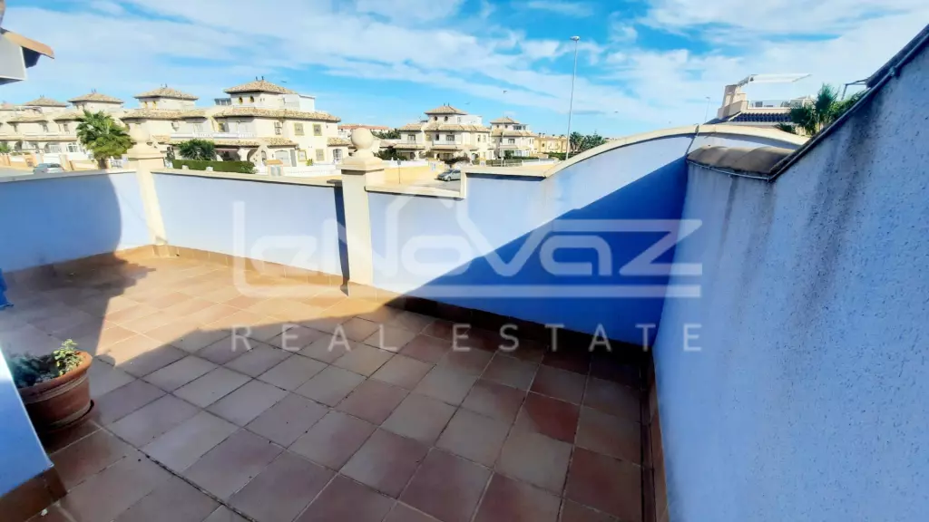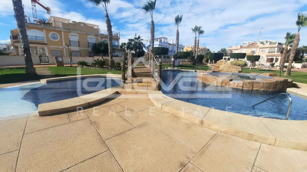 La fabulosa piscina comunitaria completa con jacuzzi y zona de piscinas para niños está a la vuelta de la esquina y ofrece mucho espacio para tomar el sol junto con un pequeño parque infantil en la parte trasera. Accesible a pie a todos los servicios de Lomas de Cabo Roig, esta propiedad sería una casa familiar ideal.