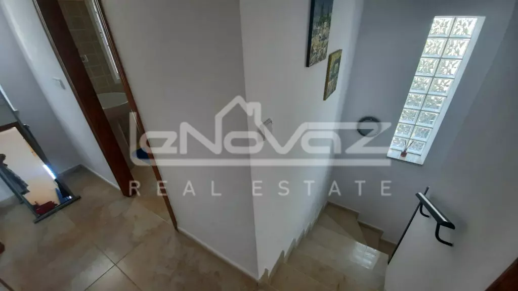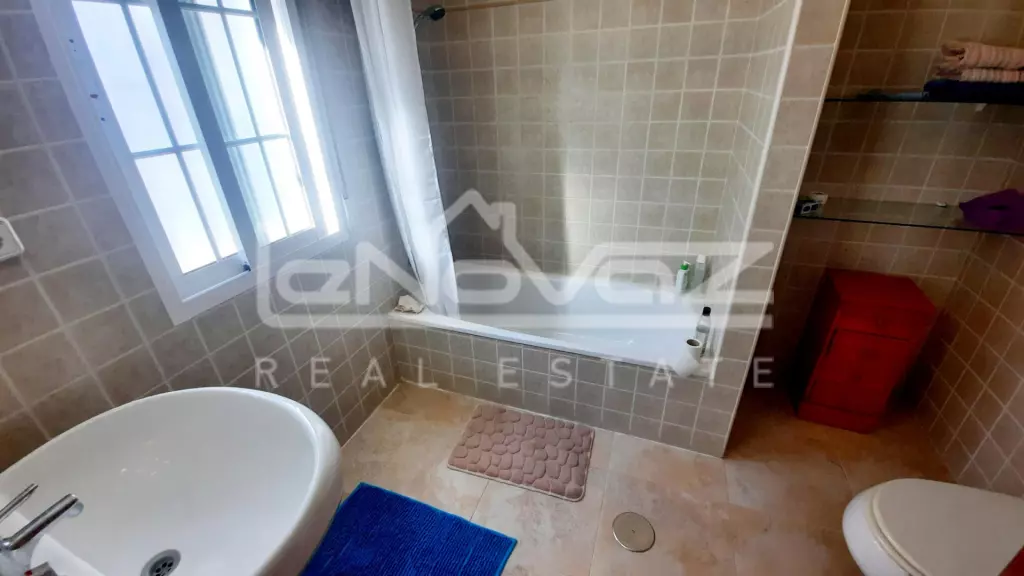 Arriba hay 2 dormitorios dobles, ambos conducen a la gran terraza con vistas al mar con el baño familiar con bañera.