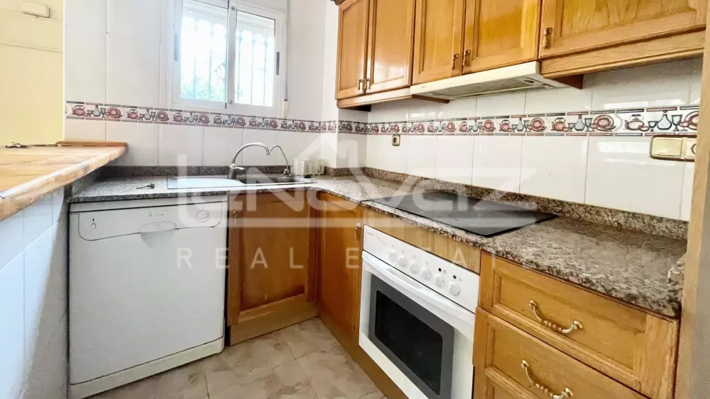 ¡Estamos encantados de presentar esta fantástica propiedad! Al entrar, te recibe un jardín orientado al suroeste y un camino privado. Esto conduce a una amplia sala de estar junto con una cocina de planta abierta. En la planta baja, también hay un práctico baño. Arriba hay dos dormitorios de buen tamaño, ambos con armarios empotrados, uno de ellos con acceso a un balcón. El baño familiar es espacioso y está equipado con ducha. Las escaleras internas conducen al solárium con hermosas vistas, lo que lo convierte en un lugar perfecto para relajarse bajo el sol.