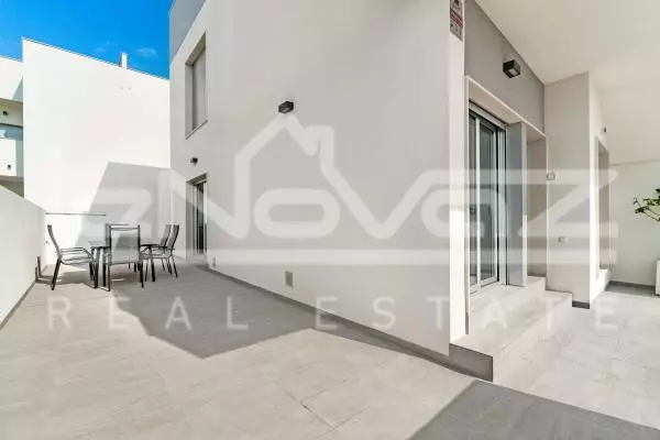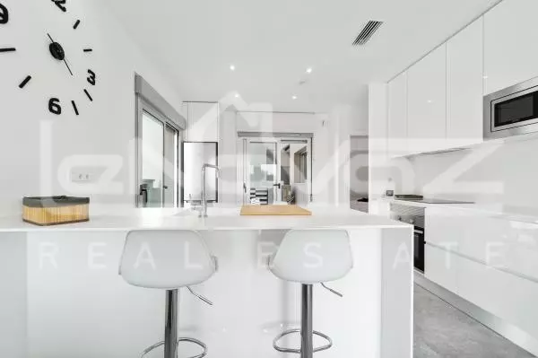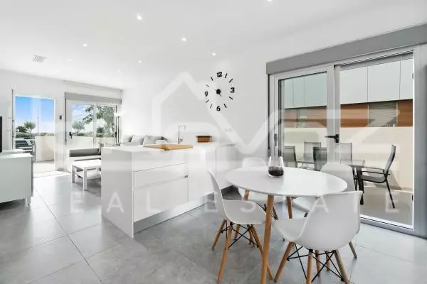 Precioso piso a estrenar de 2 dormitorios con amplia terraza orientada al sur en Pilar de la Horadada. 2 dormitorios con muebles modernos y armarios empotrados. 2 baños equipados. Amplio salón comedor muy luminoso con acceso a una enorme terraza ajardinada. Cocina americana con muebles y todos los electrodomésticos necesarios. Lugar de estacionamiento. A poca distancia se encuentran tiendas y restaurantes, un mercado, un centro comercial y de entretenimiento y otras infraestructuras importantes. El camino a las mejores playas de arena de la costa lleva menos de 5 minutos.