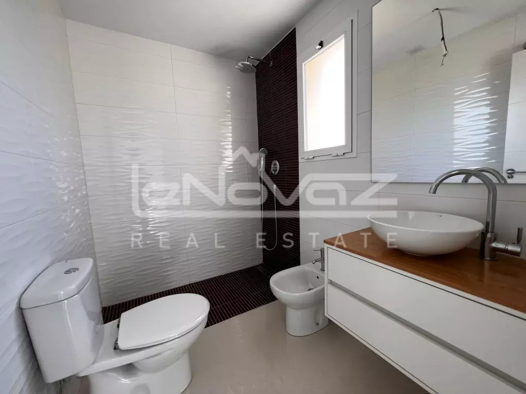 Este ámplio y luminoso apartamento está compuesto por 2 acogedores dormitorios con armarios empotrados, 2 baños modernos, cocina-comedor y un gran salón. Balcón con vista a las zonas verdes de los alrededores. A pesar de la cercanía de la playa, existe una refrescante piscina y lugares donde disfrutar del sol y la tranqulidad de la urbanización para los residentes. Hay un ascensor en el edificio para su comodidad. El clima suave de Los Alcázares permite disfrutar del sol y la playa durante todo el año, así como practicar todo tipo de deportes náuticos: vela, windsurf, catamaranes, piragüismo, esquí acuático, paseos en barco, submarinismo, hay cuatro puertos deportivos y once colegios cercanos de navegacion. También se pueden practicar otros deportes como pádel, tenis, golf, squash, karting, ciclismo, patinaje de velocidad, hípica, paracaidismo, ala delta y escalada en roca. Para los auténticos gourmets, recomendamos encarecidamente degustar los deliciosos platos de la región de Murcia. La región cuenta con una amplia gama de servicios: bares, restaurantes, supermercados, tiendas, bancos, colegios internacionales, servicios médicos, farmacias, campos de golf, clubes náuticos y un servicio de autobuses bien desarrollado. Los Alcázares se encuentra a 25 minutos en coche de Cartagena, la principal ciudad de la región, junto a un campo de golf muy bonito.