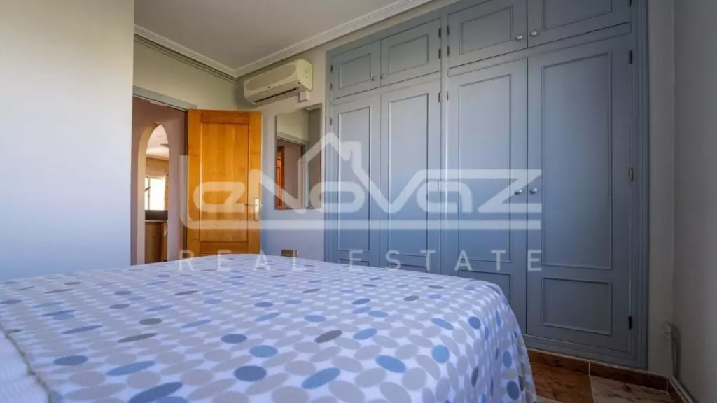Є 2 великі спальні з двоспальними ліжками, великими вбудованими шафами та кондиціонером, обидві світлі та просторі. Сімейна ванна кімната з душем над повнорозмірною ванною розташована між 2 спальнями.